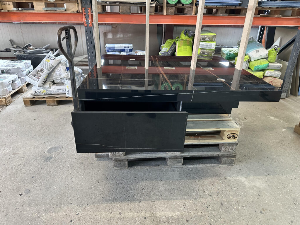 Auch bei der Herstellung von Poolumrandungen, Waschtischen oder Wandgestaltungen mit Sonderformaten wie Megaformatplatten in den Maßen 160×320 cm kommen unsere Zuschnitte zum Einsatz – immer präzise gearbeitet, robust und optisch makellos.